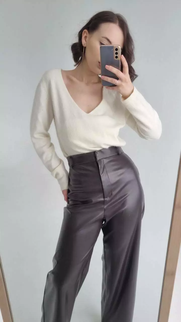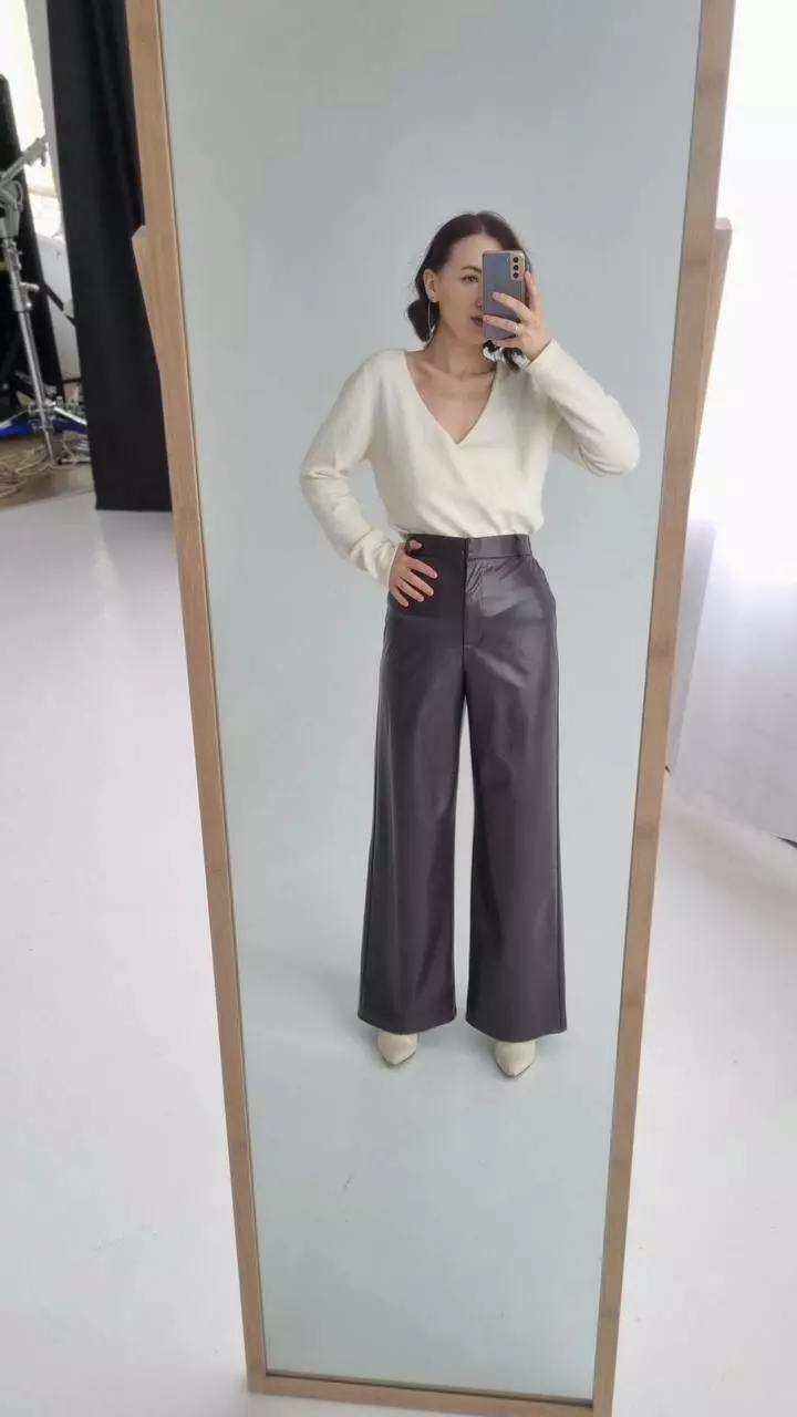 Брюки-палацо з екошкіри