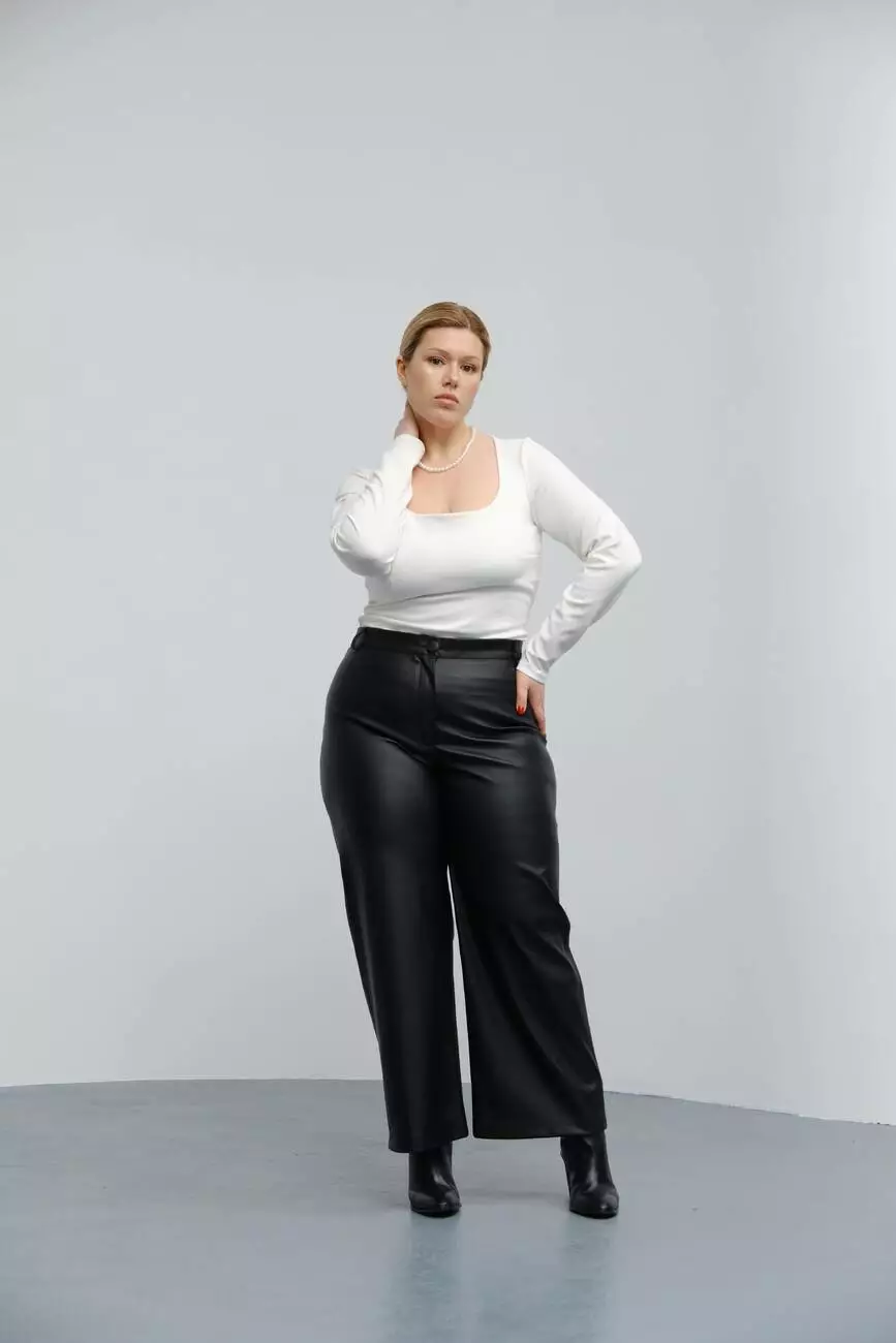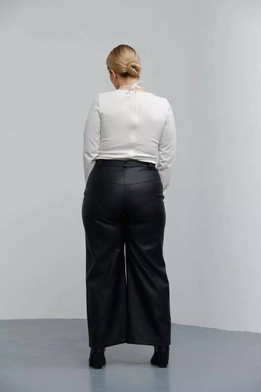Виготовлені з матової штучної шкіри чорного кольору, ці брюки