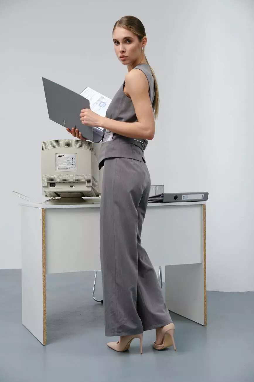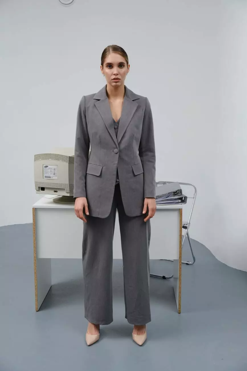 жилетом та піджаком у такому ж сірому кольорі. Завдяки цьому ви