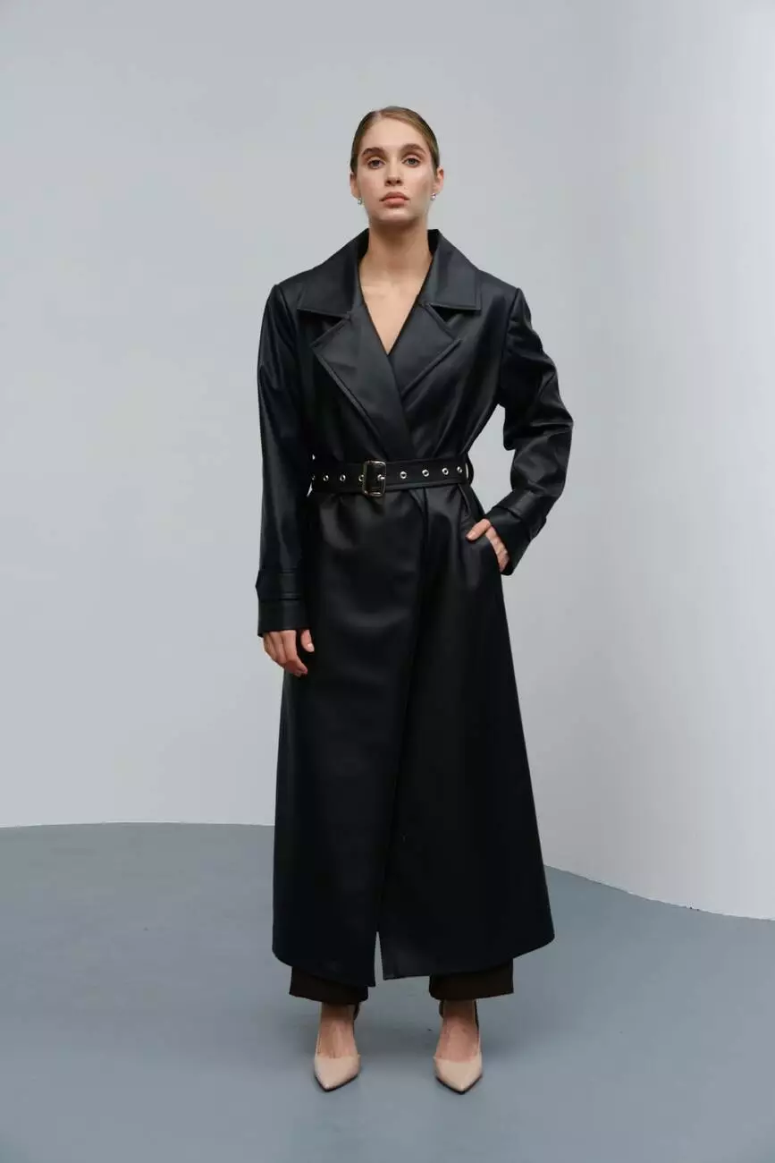Базовий універсальний тренч з щільної екошкіри, який стане
