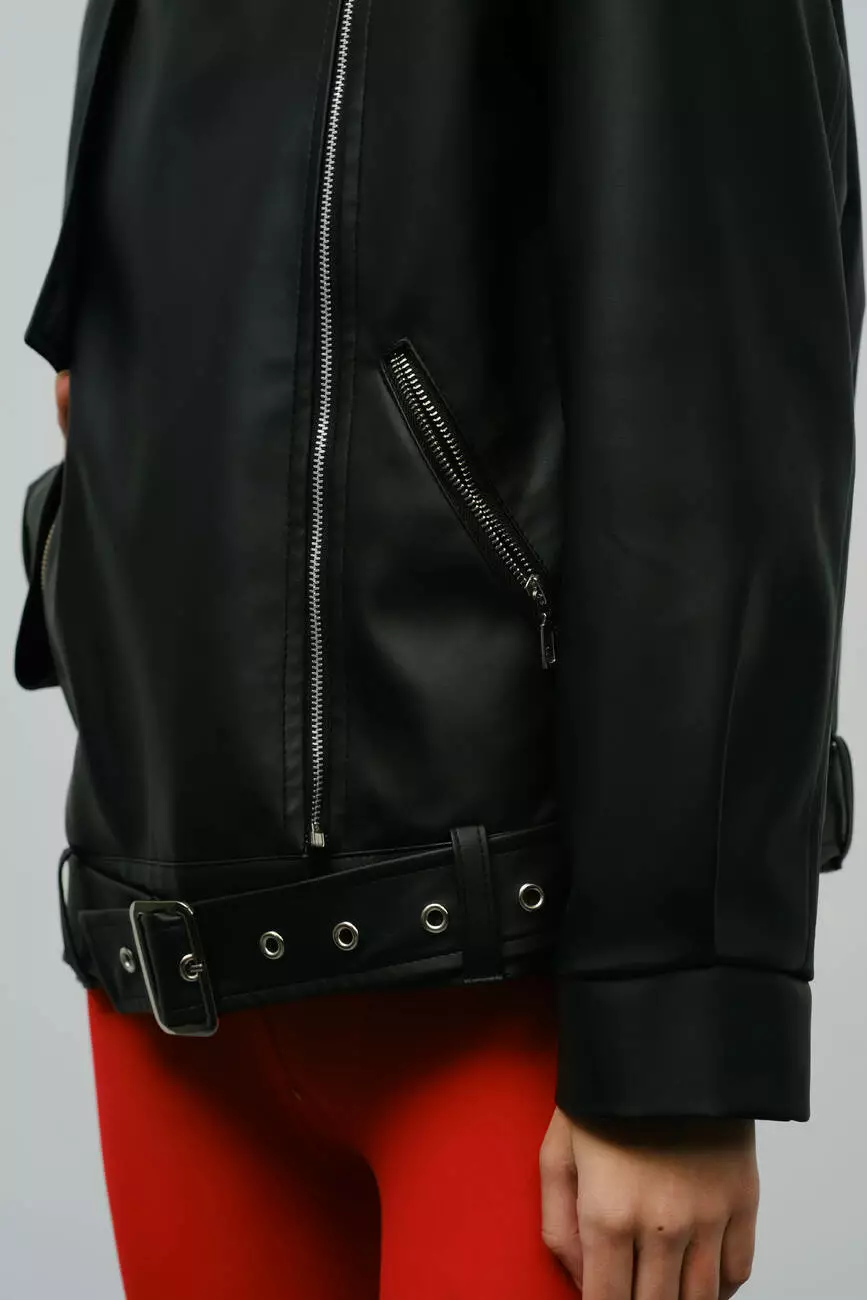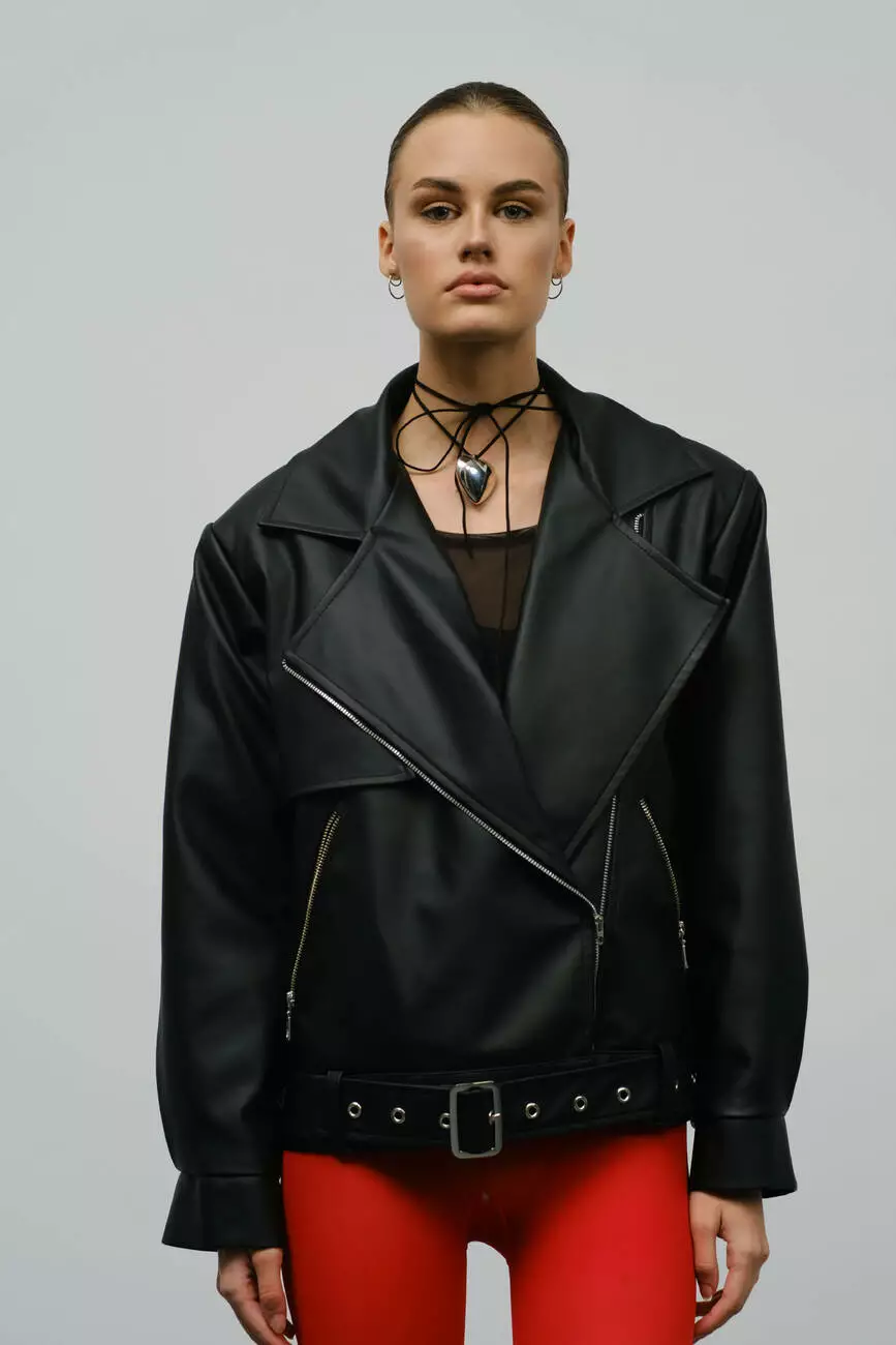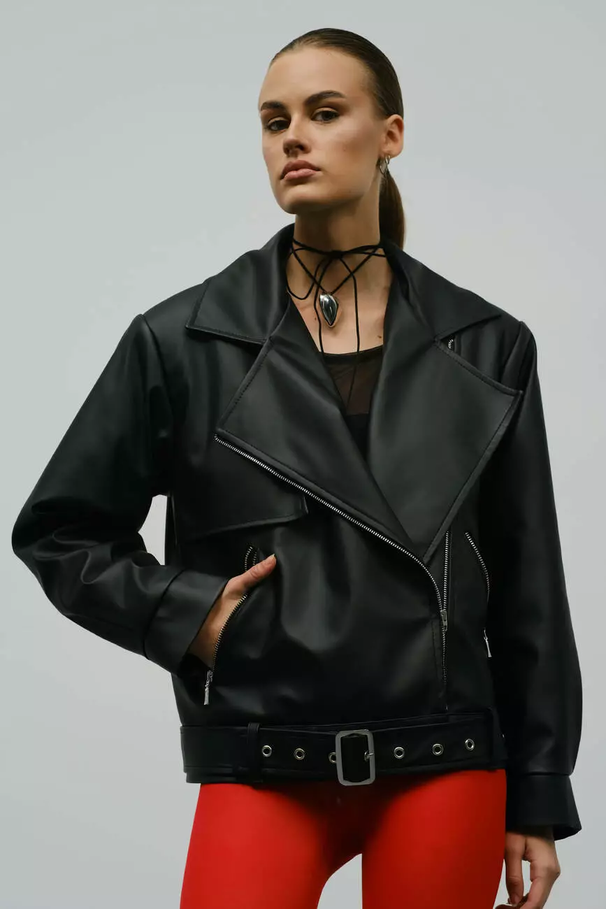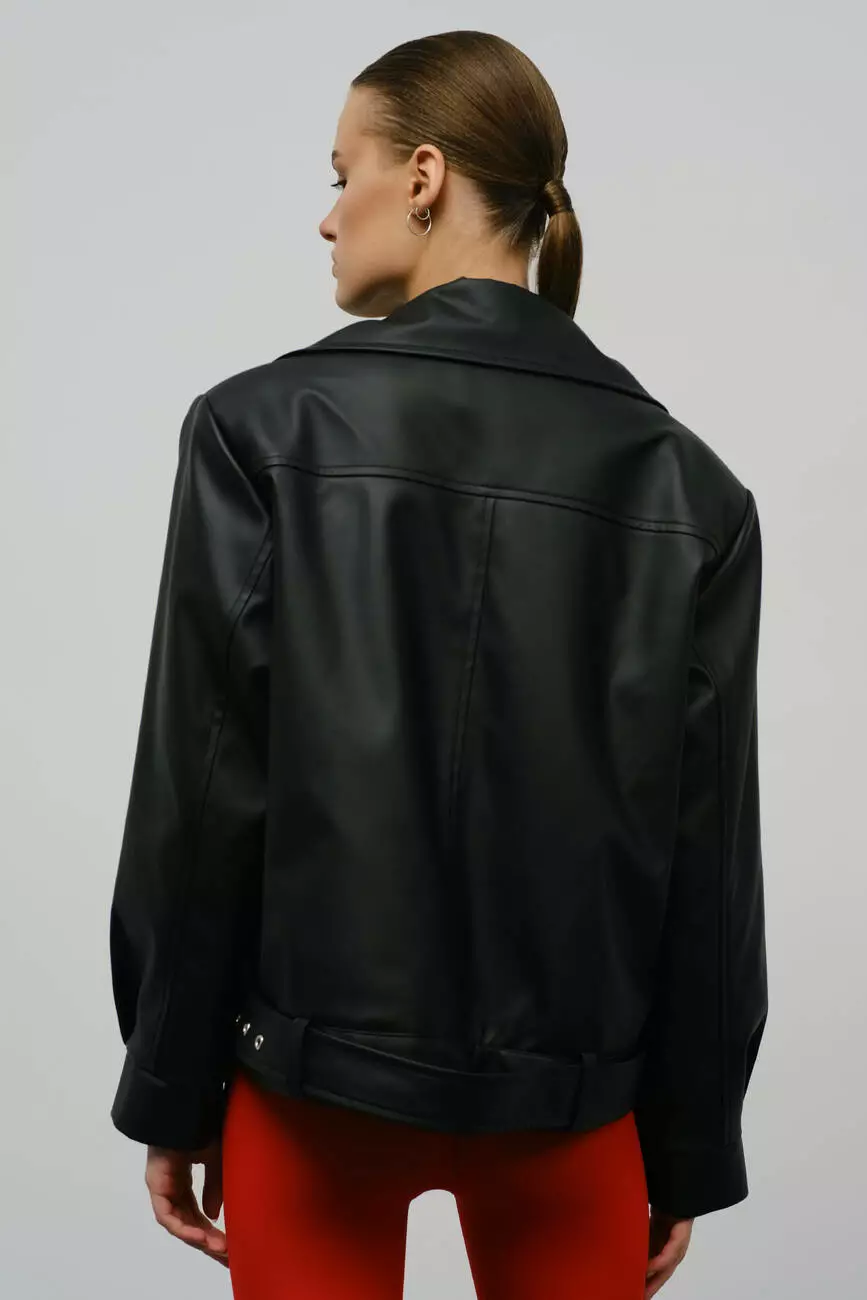 Утеплена куртка-косуха з екошкіри "BLACK"