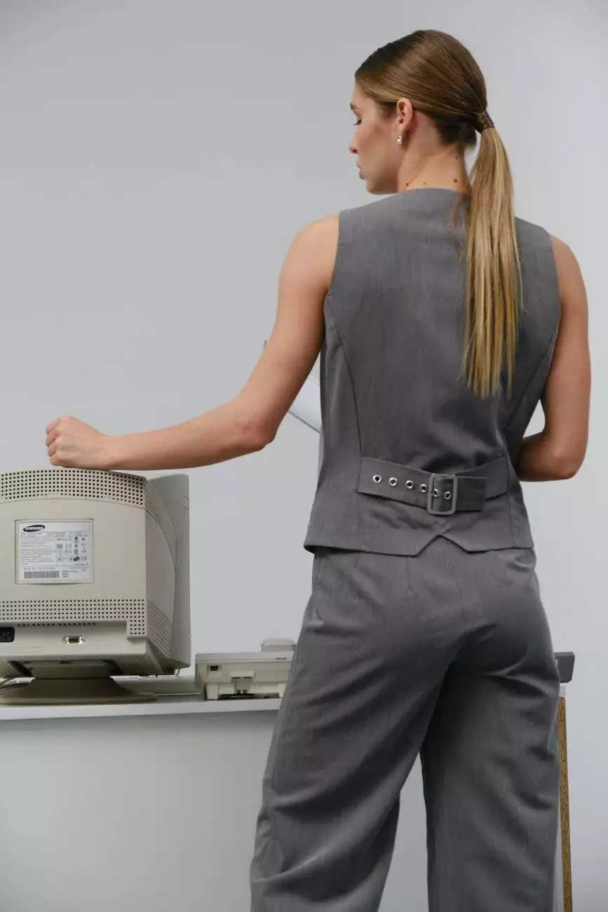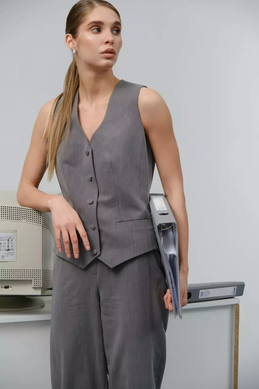Стильний жилет, виготовлений з щільної якісної костюмної тканини